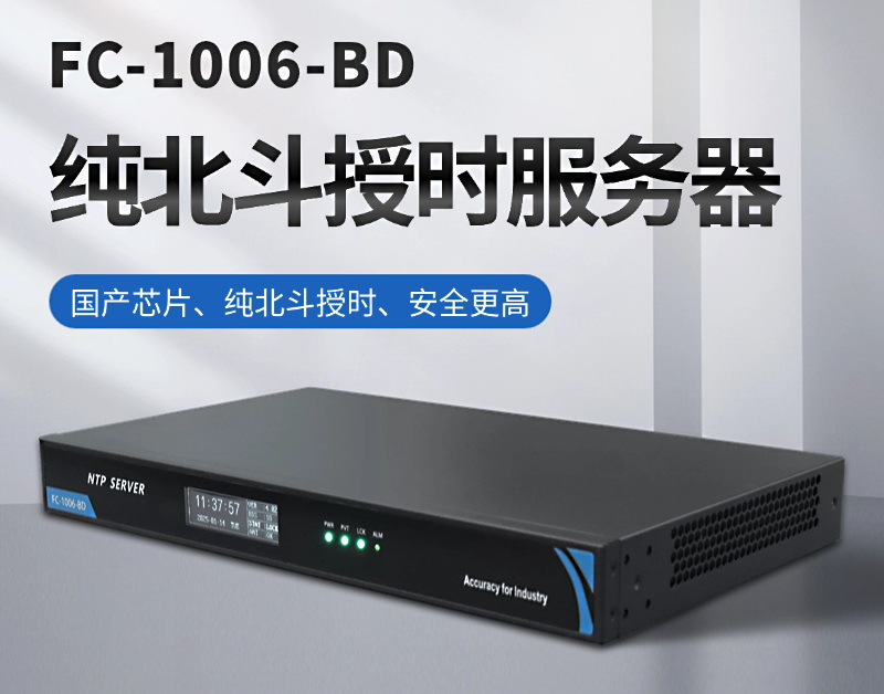 近日,,,我司推出了一款纯北斗网络授时服务器FC-1006-BD,,,,采用了获得工信部认证的纯国产单北斗专业型授时芯片,,支持SN...