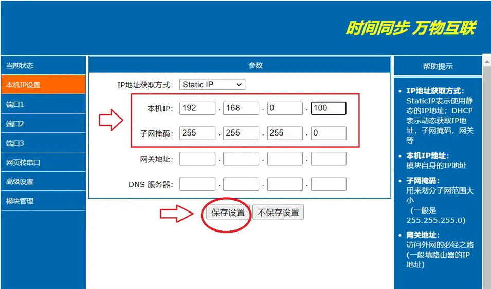 通过网页修改服务器IP地址,,,,将服务器配置为监控等设备一个网段内(注意避免IP地址冲突,,,,有核心交换机的应用场景下,,,,核心交换机需要启用NTP服务功能)